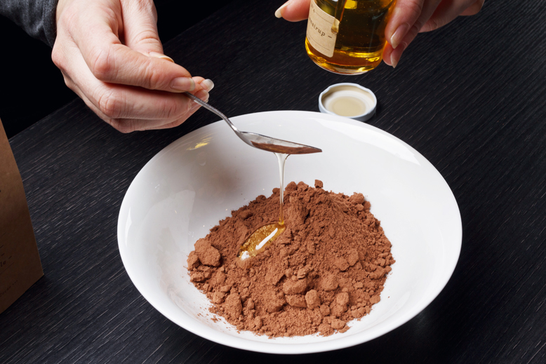 Die hübsch gestaltete Box enthält fünf Zutaten, die man benötigt, um im Handumdrehen seine ganz eigene Lieblingsschokolade zu kreieren: Kakaopulver, Kakaobutter, Agavensirup, Vanille und ungeröstete Kakaobohnen. Zusätzlich enthalten die Päckchen schön verzierte Gussformen für die Schokolade sowie ein Rezept, das in Kürze einen raschen Überblick über die wichtigsten Infos zur Schokoladenherstellung vermittelt. Schon beim Auspacken fällt auf, dass die einzeln verpackten Zutaten von sehr hoher Qualität sind. Auch der Geruch, der aus den naturfarbenen Tüten aufsteigt, macht sofort Lust auf mehr – daher legen wir auch direkt los.