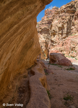 Zeugnisse dieser ingenieurtechnischen Meisterleistung des arabischen Volksstammes der Nabatäer gibt es noch heute zu bewundern. Erstaunlich gut erhaltene Wasserleitungen ziehen sich entlang der Felswände durch den Sik, an dessen Ende das Schatzhaus ob seiner Größe und Virtuosität jeden Besucher in Staunen versetzt. Am Eingang der Felsenschlucht wurde sogar ein Tunnel zur Wasserableitung angelegt, der die Stadt vor Überschwemmungen schützte und zugleich die umliegende Landwirtschaft mit Wasser versorgte.
