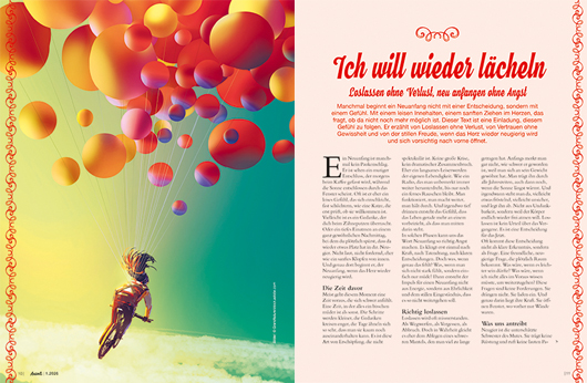 Übrigens ist das eine Botschaft, die für viele unserer Autorinnen und Autoren besonders wichtig ist: das Glück im Alltag aufzuspüren und sich ihm zu öffnen – und sich nicht dabei selbst im Weg zu stehen, etwa indem man dem Optimierungswahn verfällt und dem Glück dauerhaft hinterherläuft wie einer Möhre, die einem vor die Nase gehalten wird. Eine weitere Botschaft in den Artikeln ist, wie wichtig es ist, den eigenen Weg zu gehen. Und in welchen ganz verschiedenen Situationen unseres Lebens wir angergt oder auch manchmal gezwungen werden, durch neue Türen zu gehen und dort ein Stück mehr vom alltäglichen Glück zu finden.