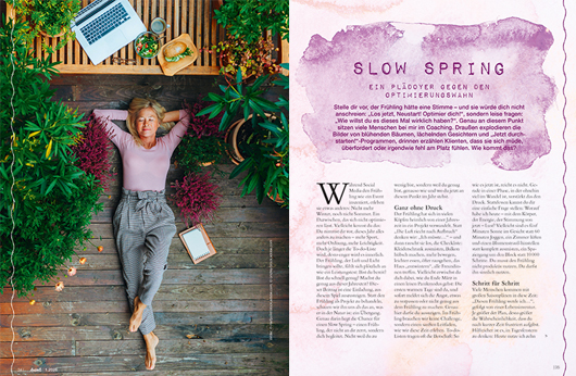 Es ist schon eine kleine Herausforderung, quasi ein Frühlingsheft fertigzustellen, während es da draußen noch schneit. Aber solange ist es nicht mehr hin, bis der Frühling einzieht und mit ihm die bunten Farben, das Singen der Vögel und der Duft wunderschöner Blüten. Also machen wir uns in unseren Texten auf den Weg, ihn zu begrüßen: Wir schlagen den Bogen vom emsigen Flug der Bienen hin zu den sich daraus ergebenden Geschenken an unsere Gesundheit. Wir zelebrieren schon vorab die wärmende Kraft der Frühlingssonne und wir widmen uns der energiegeladenen und schmackhaften Frühlingsküche.