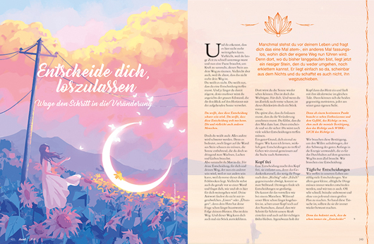 Übrigens: Auch in dieser Ausgabe findet Ihr wieder thematisch passende Affirmationskarten zum Ausschneiden. Auch die zum Thema passenden Meditationen sind wieder Bestandteil des Heftes. Für die Abonnenten lag wie immer ein kleines, wunderschön gestaltetes Geschenkbüchlein mit berührenden Zitaten bei. Das Zitatenbüchlein ist wie auch unsere bisherigen Cover-Kunstdruckkarten und Fensterbilder bei uns einzeln bestellbar.