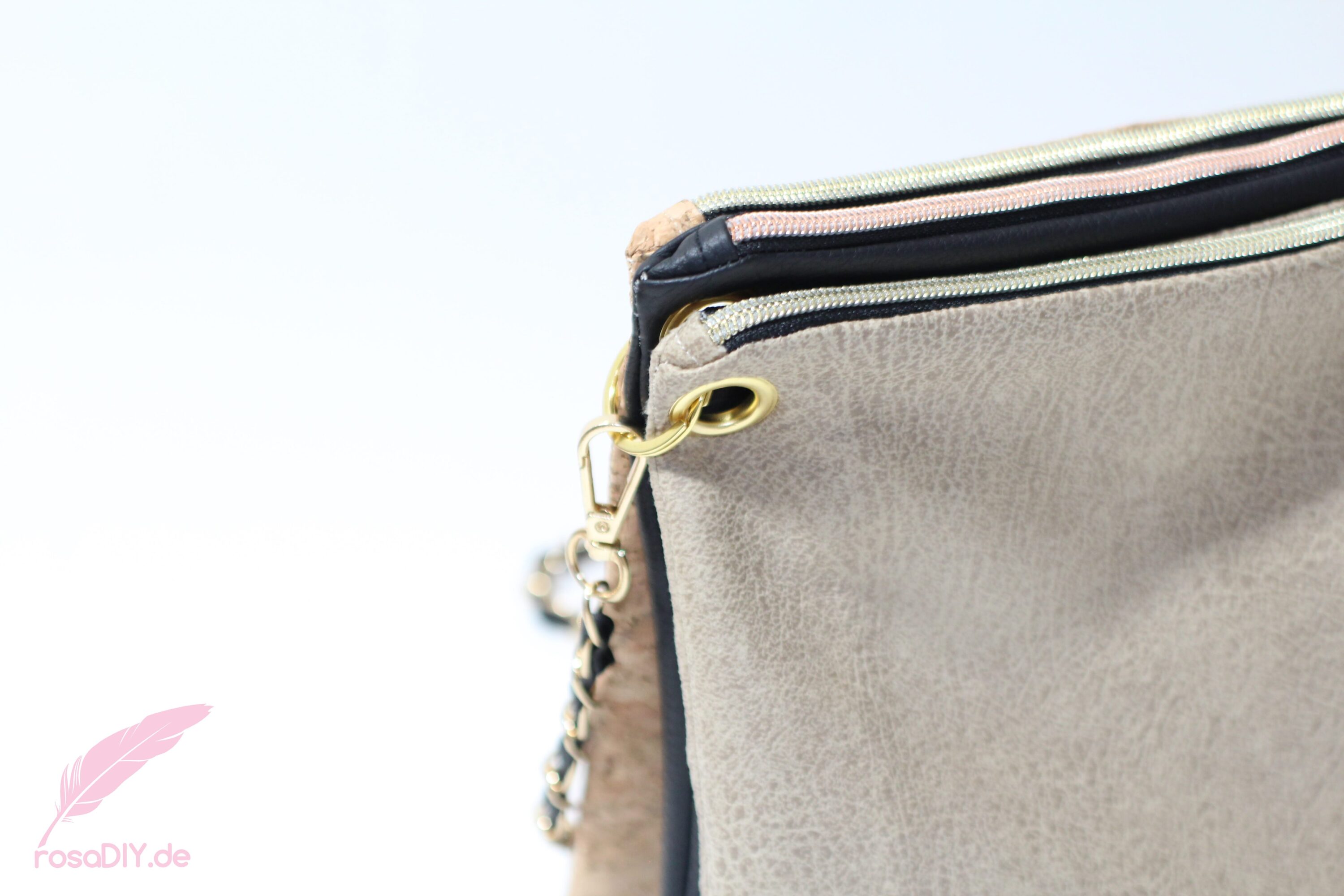 - Schlüsselringe in gold, 14 mm Ösen in gold für (falls du größere Ösen willst) und den Schulterriemen für jeweils von Amazon. (der Verkäufer hat übrigens noch viele andere schöne Schulterriemen)