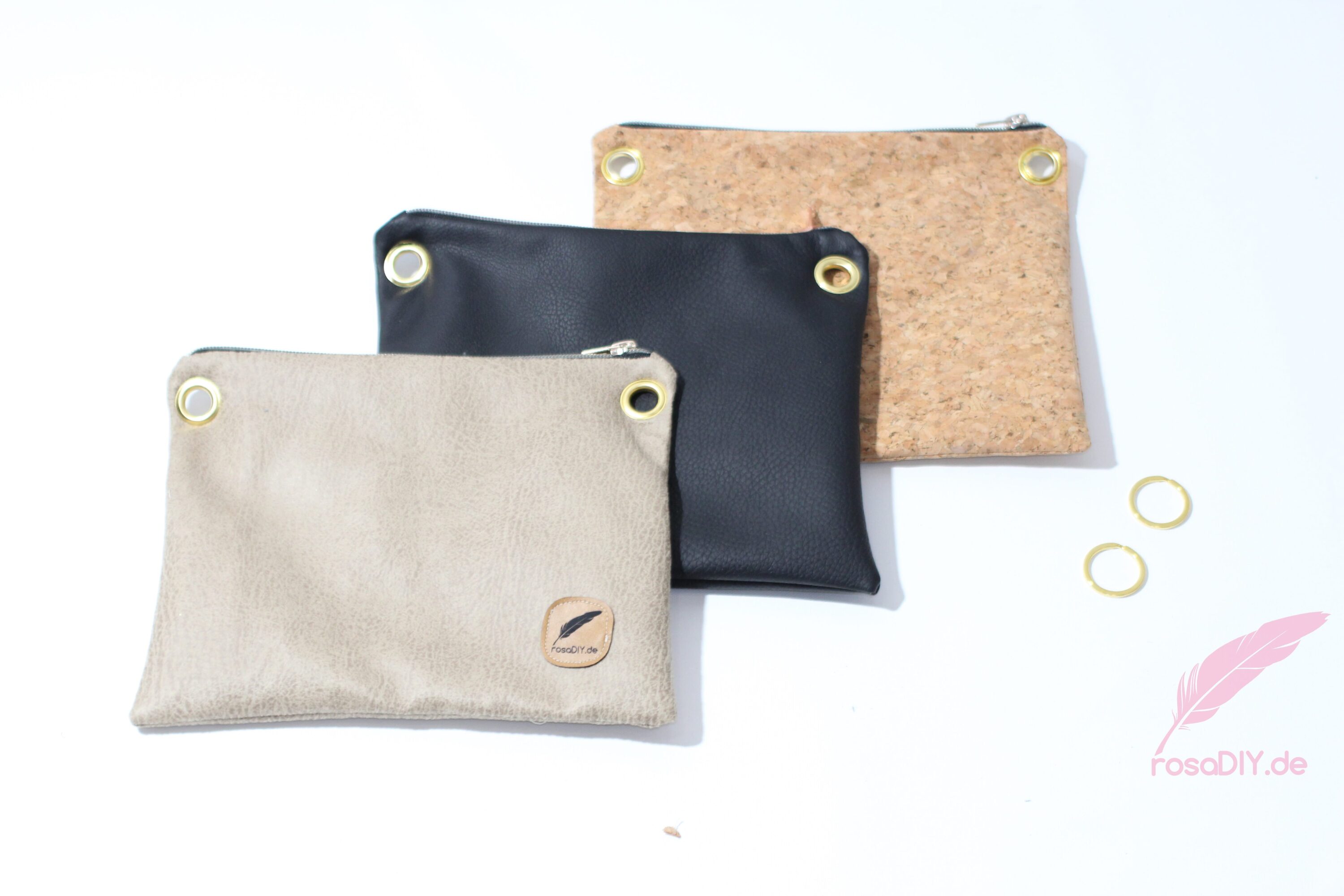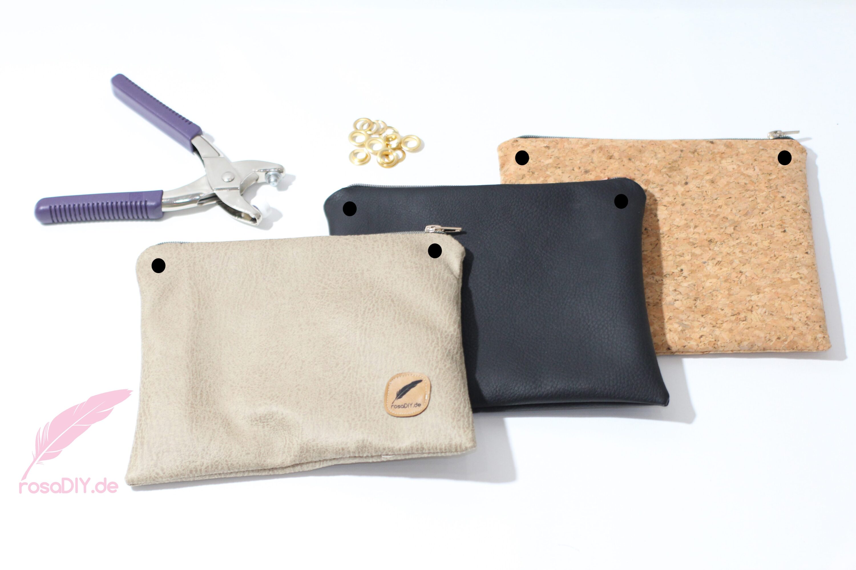 - Kunstleder, Kork, 10 mm Ösen und metallisierte Reißverschlüsse gibt es z.B. bei Snaply