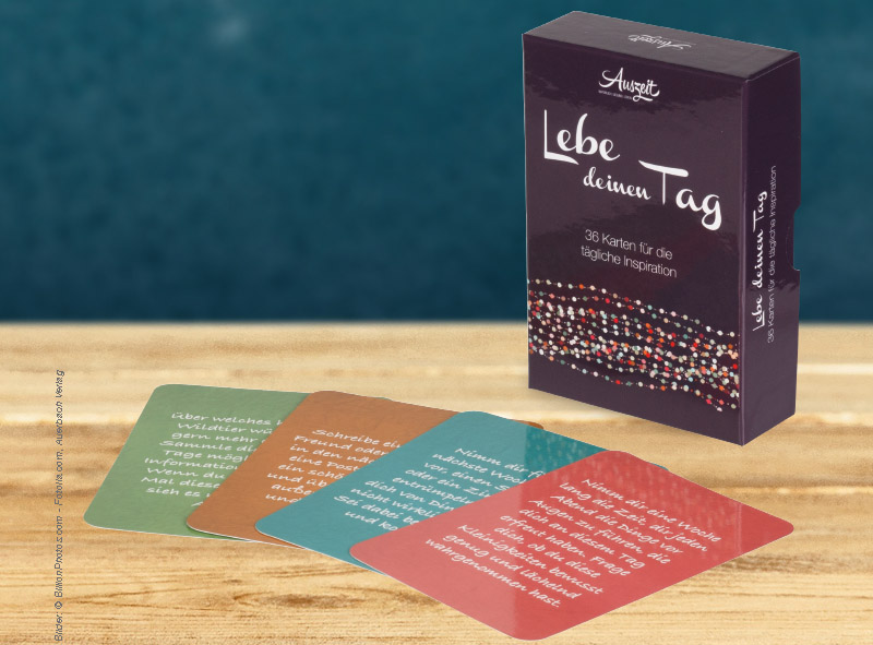 Ein solcher Impulsgeber soll unser Kartenset sein, von dem 2016 in vier Ausgaben der AUSZEIT die Karten zum Heraustrennen zu finden waren. Das Set gibt es jetzt separat in einer exklusiven Box und es sorgt mit jeder einzelnen konkreten Aufgabe für Inspiration und Anschub, seinem Ziel einen kleinen Schritt näher zu kommen. Egal, ob es nun darum geht, achtsamer durch den Tag zu gehen, oder sich und der Natur um sich herum auch mal etwas Gutes zu tun. Lassen Sie sich ein wenig anschubsen, ein wenig inspirieren!